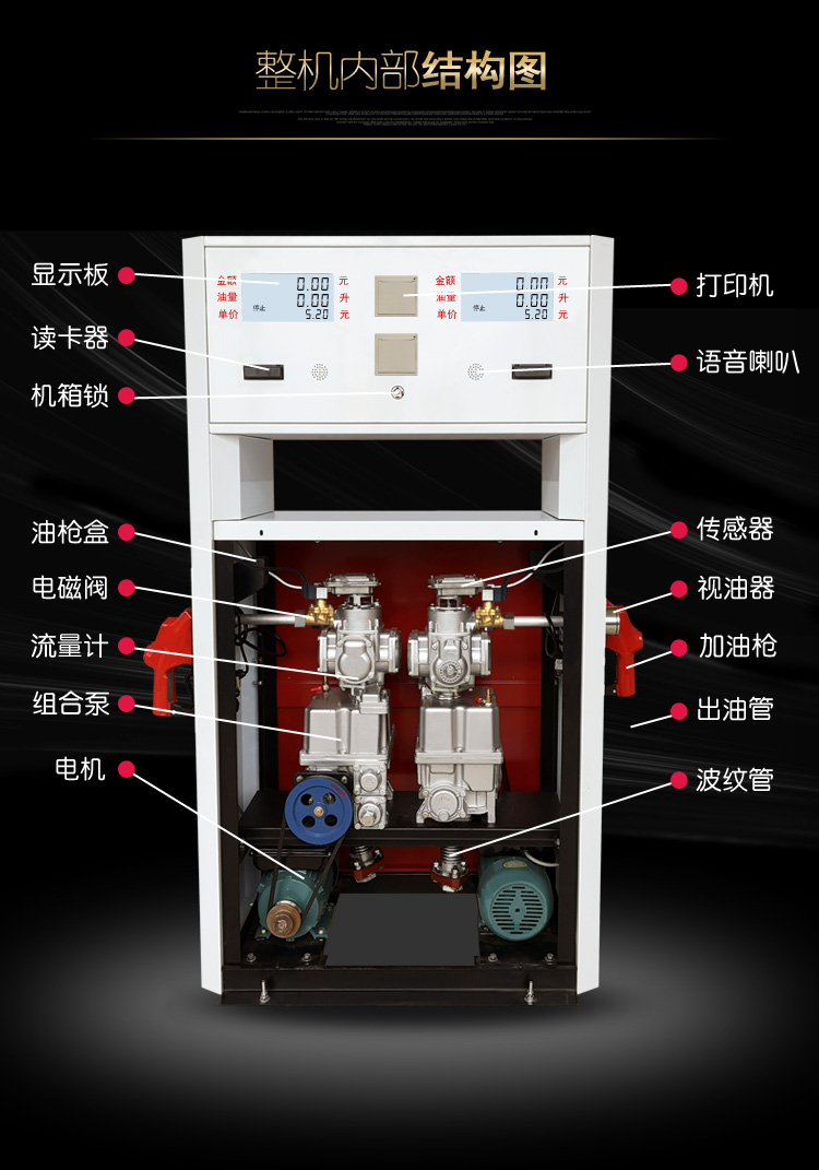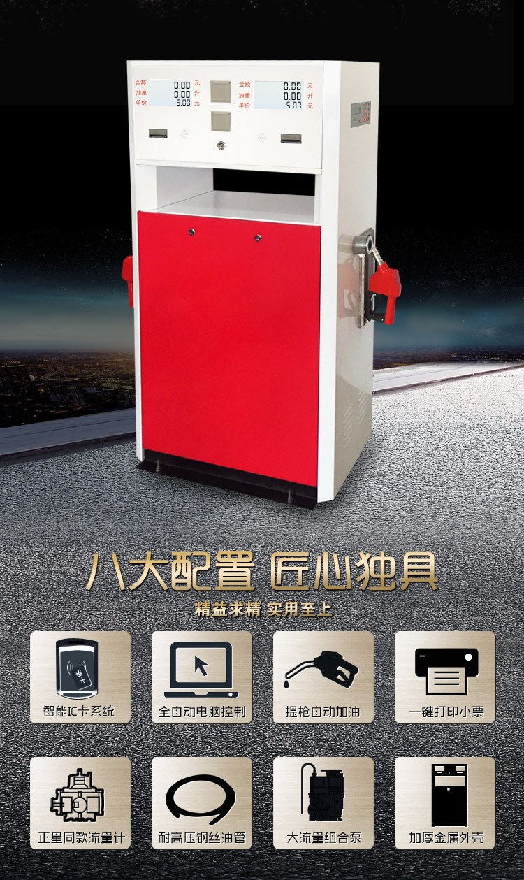 嘉眾雙槍IC卡加油機1602K型是一款加油站防爆插卡加油機,可加柴油和汽油,內帶語音功能,流量每分鐘可達60L-80L,加油機內部采用正星同款流量計和防爆組合泵裝置,安全更放心!